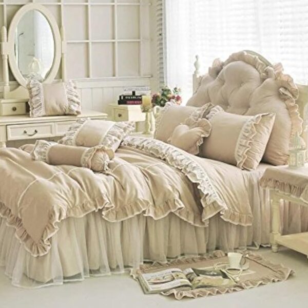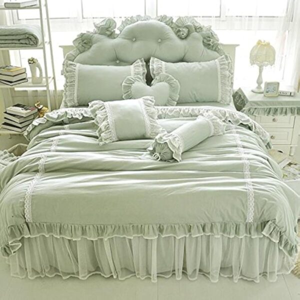 Light Gray-Full/Queen 3 Piece Ruffled Quilt Set, 3